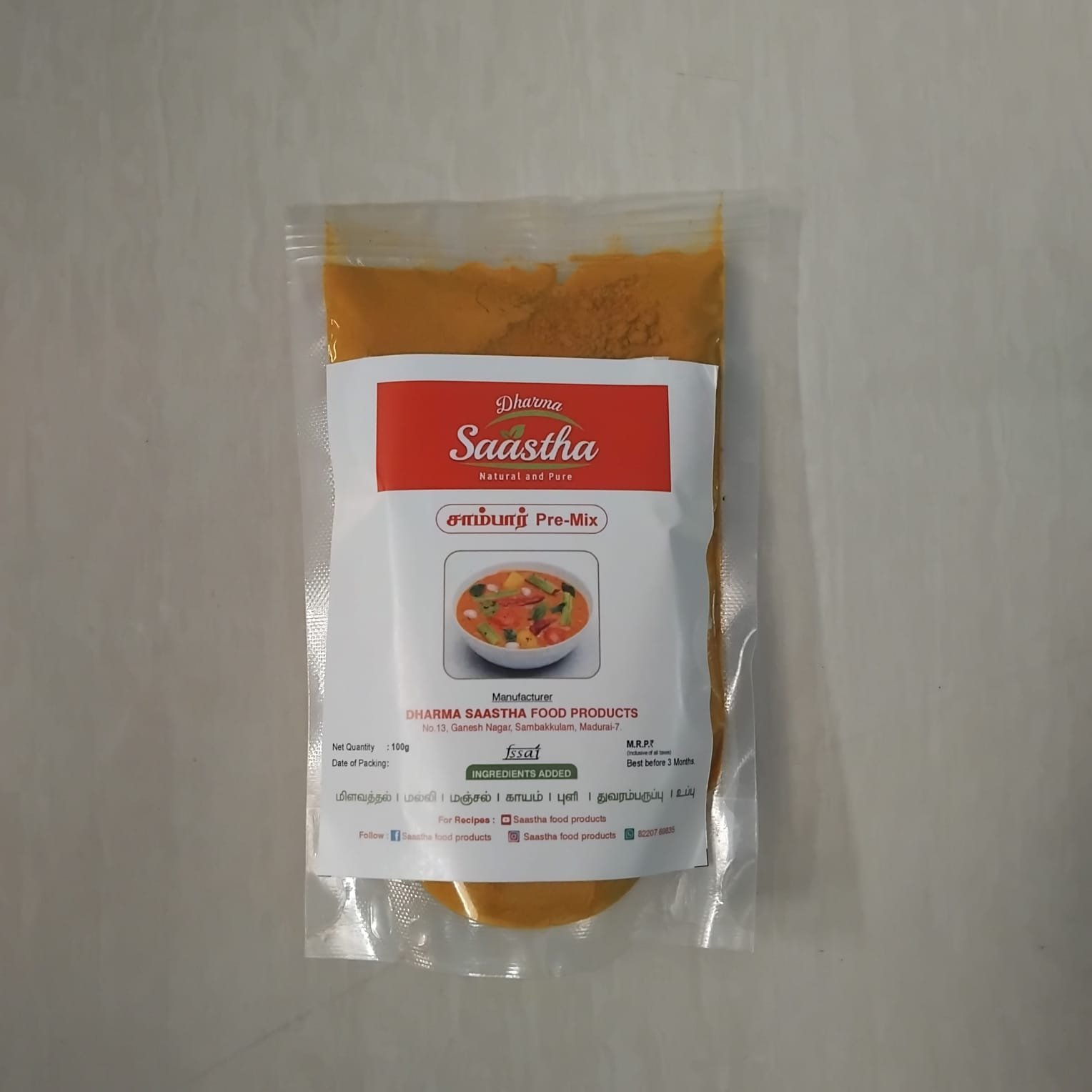 Experience the authentic flavor of South India with our SAMBAR PRE MIX – a perfect solution for quick, tasty, and healthy meals. Made with a blend of traditional spices and lentils, this SAMBAR PRE MIX ensures your sambar tastes just like home. Proudly offered by Dharma Saastha, this mix brings convenience without compromising on taste or quality.